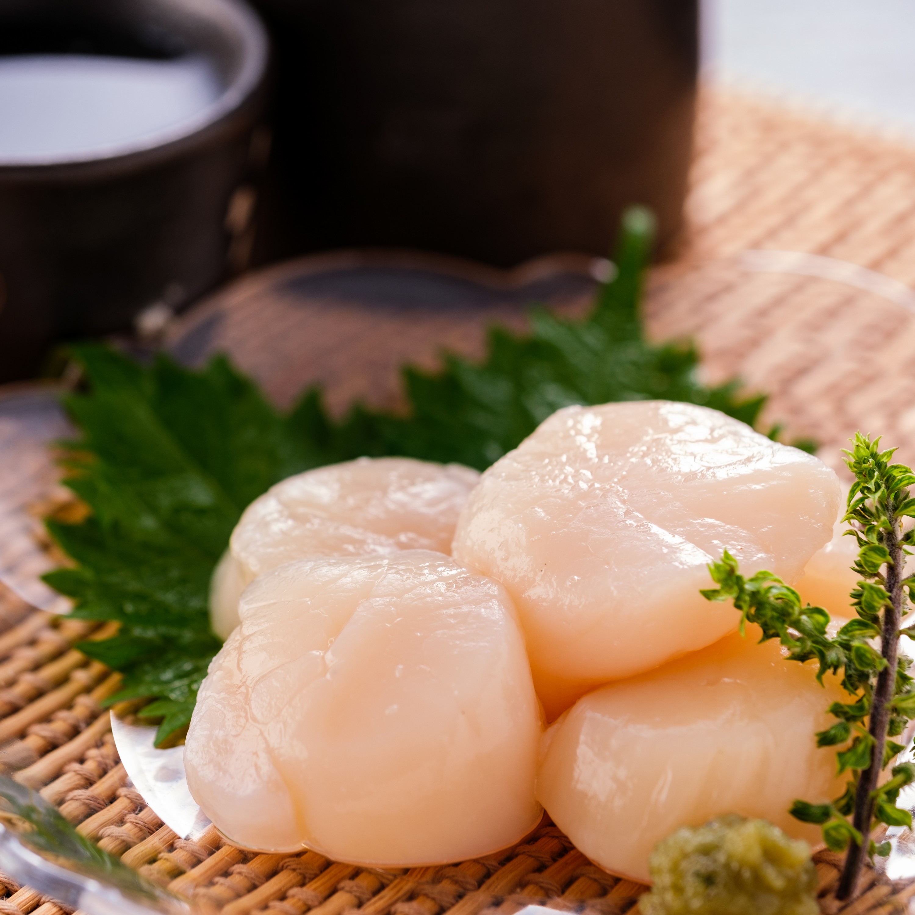 北海道の極寒の海が育てた最高級のホタテ貝柱、お刺身や海鮮丼に最適です。